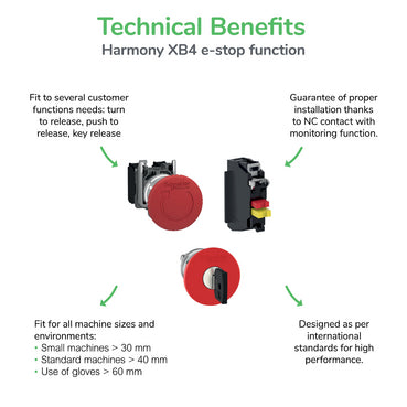 Parada de emergencia Schneider Electric, diámetro 22 mm, color rojo, voltaje hasta 600 VAC, 1 contacto normalmente cerrado NC